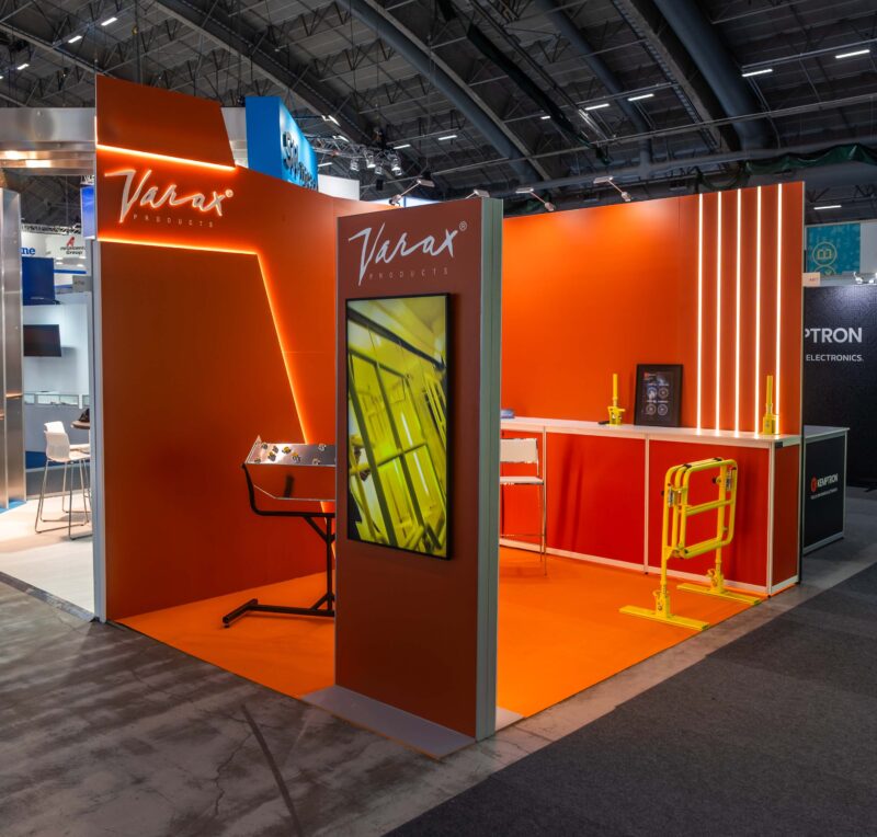 Suunnittelimme ja rakensimme Varaxille värimaailmaltaan erottuvan messuosaston Alihankinta 2025 -messuille. Raikas, värikäs osasto valaistiin LED-valonauhoilla. Messuvieraiden huomiota houkuteltiin lisäksi kohokirjaimilla ja muotoonleikatuilla taustavalaistuilla elementeillä.